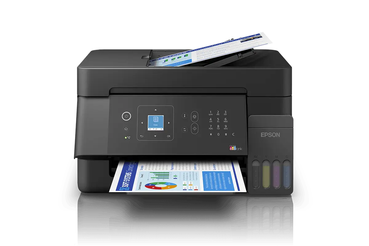 מדפסת משולבת דיו Epson EcoTank L6376 מדפסת משולבת, כוללת: הדפסה, סריקה והעתקה מהירויות הדפסה של עד 18 תמונות לדקה בשחור...
